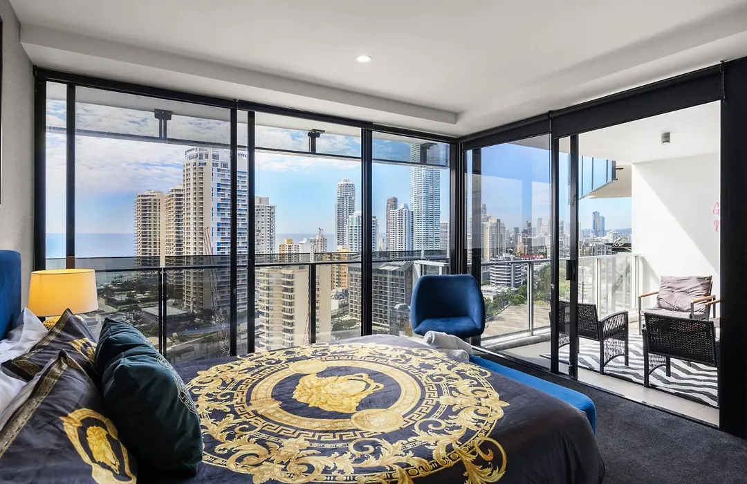 Das Apartment Ocean View Vogue Themed Circle On Cavill verfügt über einen Wohnbereich, einen Balkon und eine Küche sowie bietet einen Ausblick aufs Meer. Die Gäste der Unterkunft genießen den Komfort von einem Haartrockner, einer Duschhaube und Badelaken im Badezimmer. Außerdem findet man hier eine getrennte Toilette, einen Whirlpool und eine Dusche.